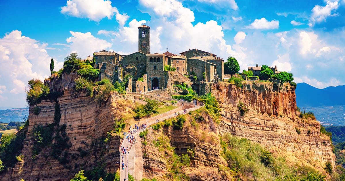 Il paese è accessibile solo a piedi, attraverso un ponte pedonale. Questo lo rende un luogo magico, lontano dal caos della vita moderna. Una passeggiata tra le sue strade consente di ammirare le case in tufo, le piccole botteghe e i panorami mozzafiato che si estendono sulla Valle dei Calanchi. Ogni angolo di Civita è una soggetto fotografico da immortalare.